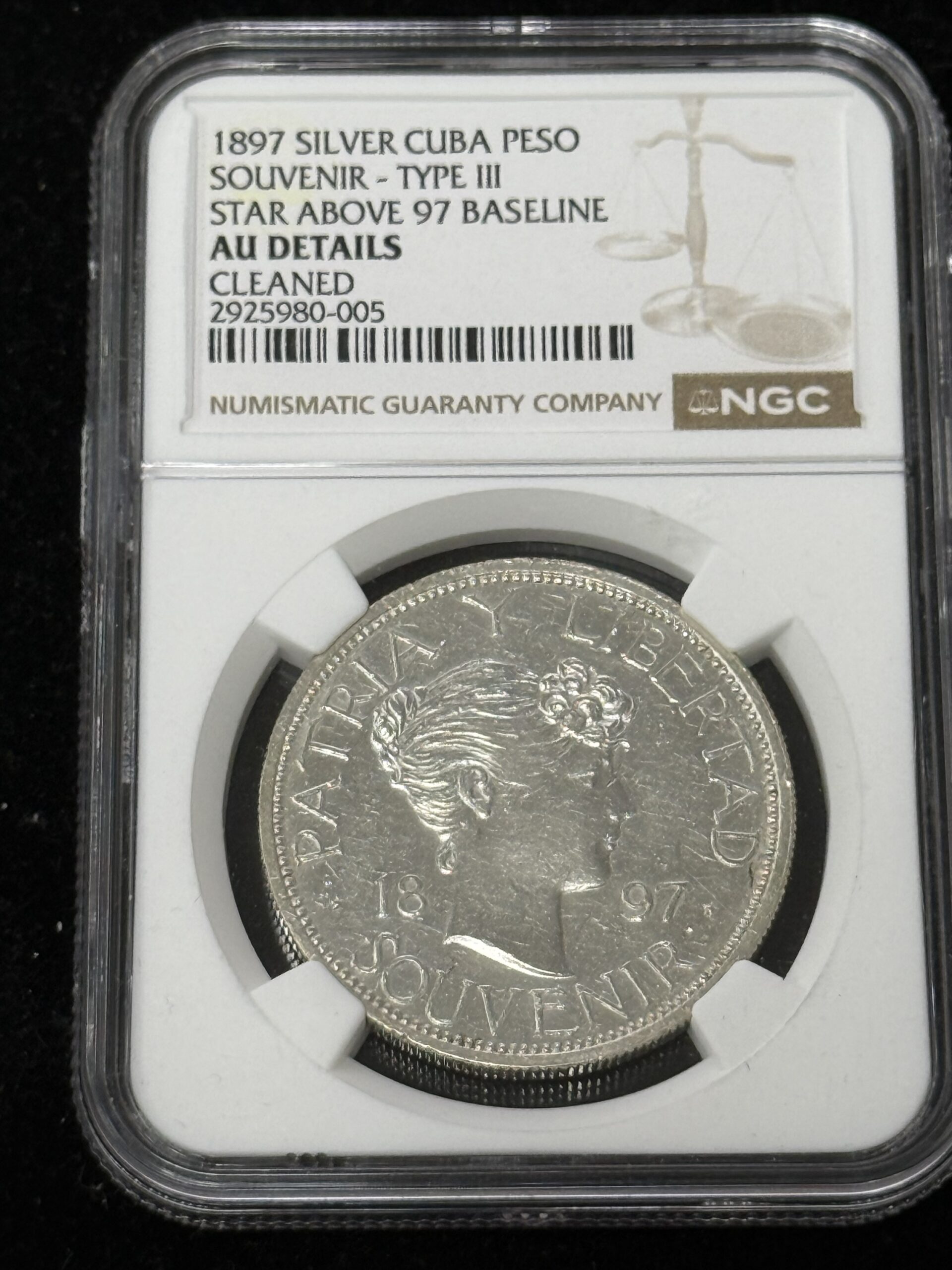 1897 Cuba Souvenir Peso Star Above NGC AU Cleaned