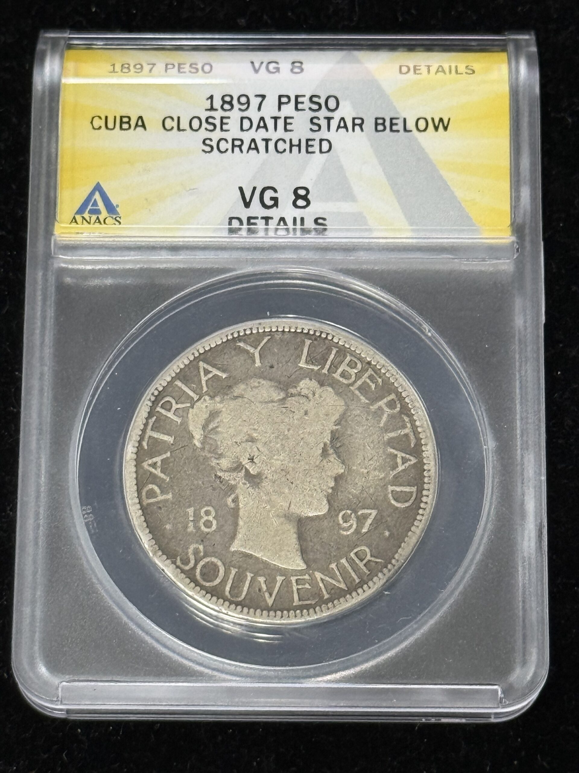1897 Cuba Souvenir Peso Star Below ANACS VG Details