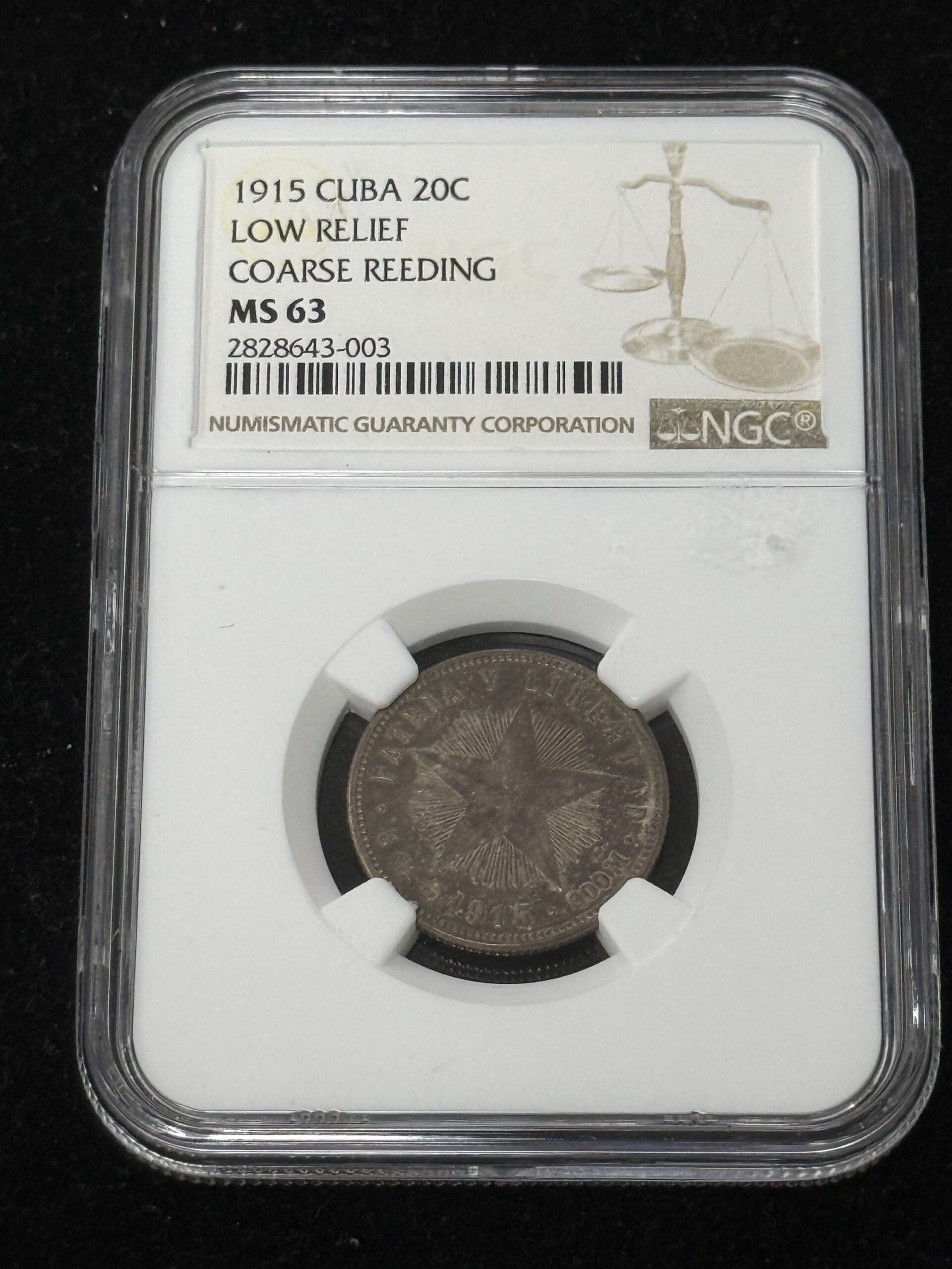 1915 Cuba 20 Centavos Low Relief Coarse NGC MS63
