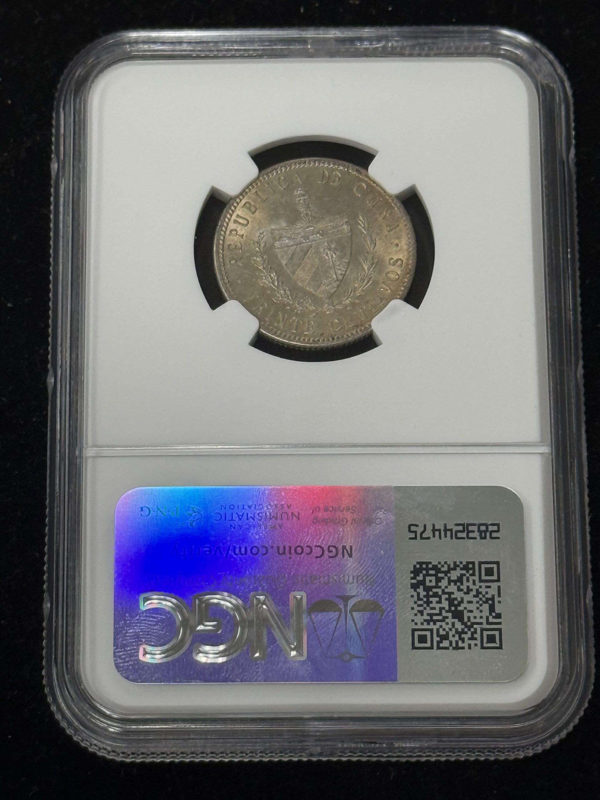 1915 Cuba 20 Centavos Low Relief Coarse NGC MS64