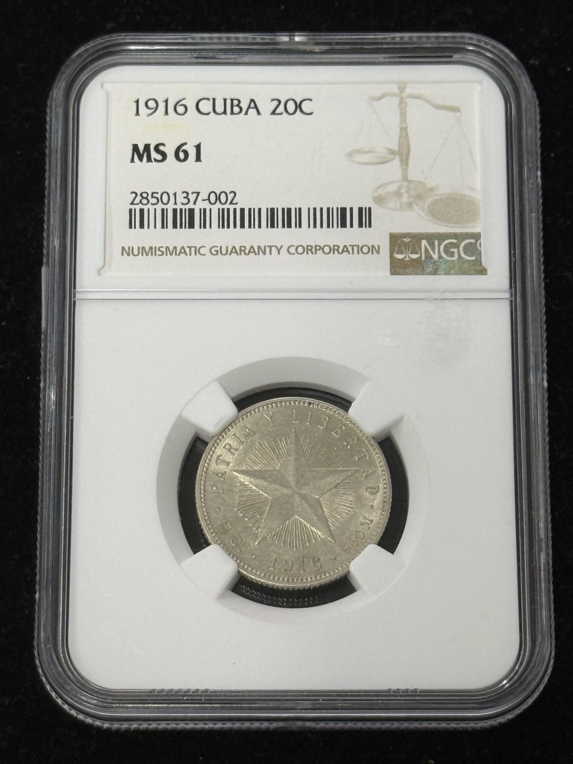 1916 Cuba 20 Centavos NGC MS61