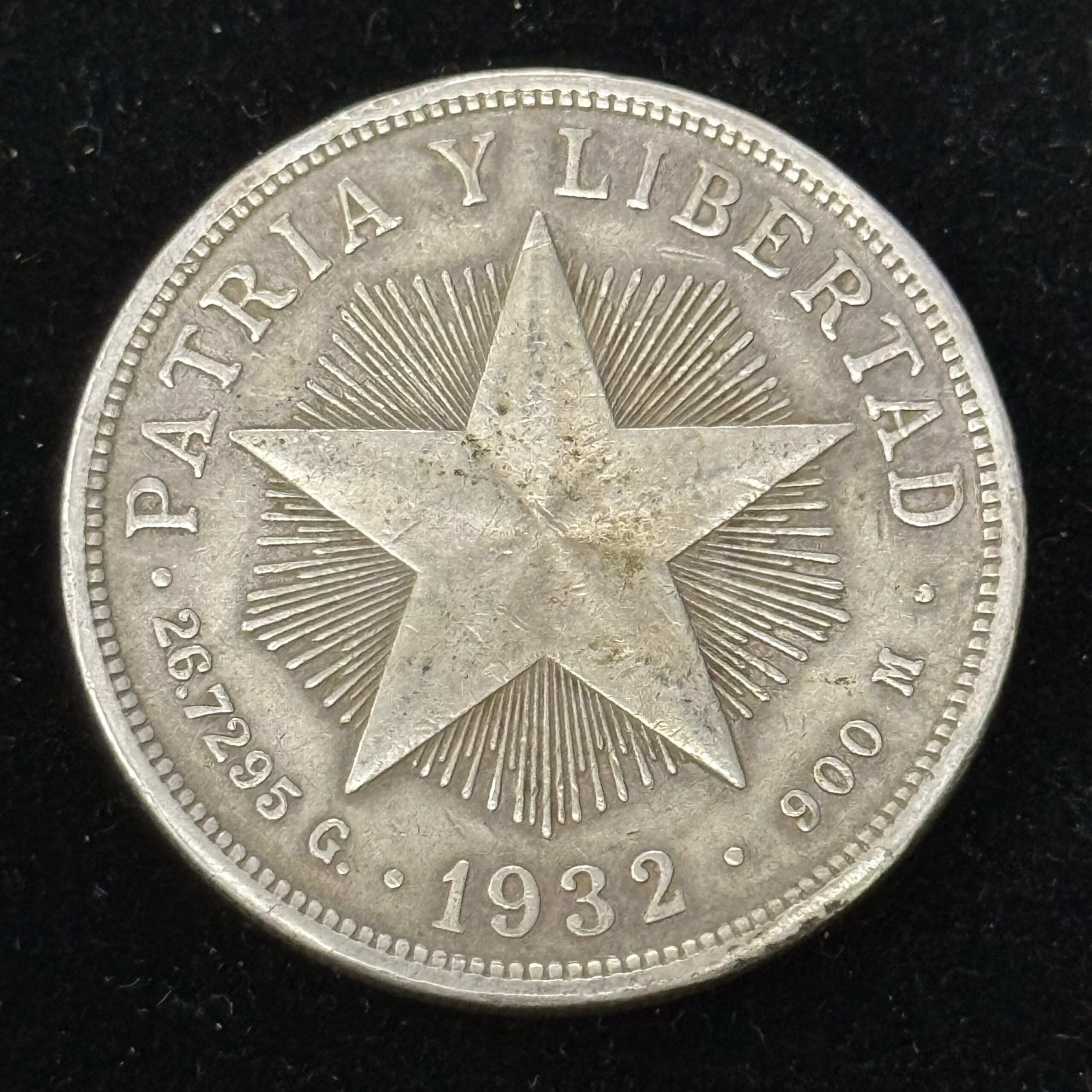 1932 Silver Cuba Star Peso XF