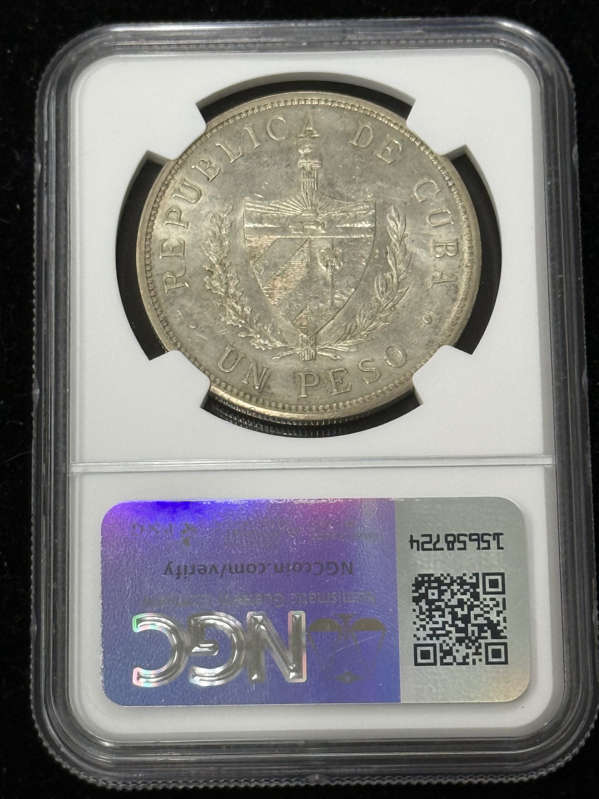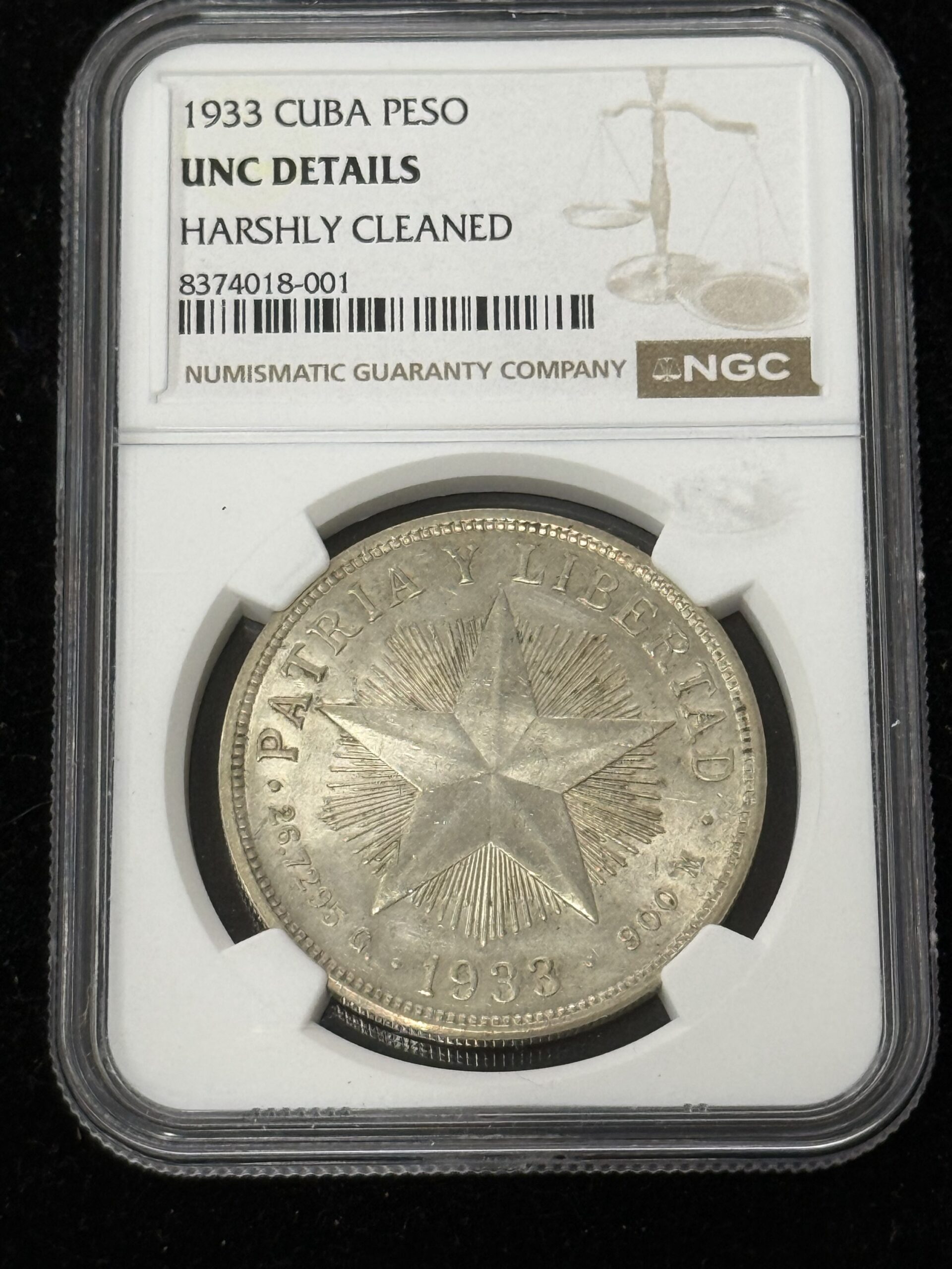 1933 Cuba Silver Star Peso NGC UNC Harsh Cleaning