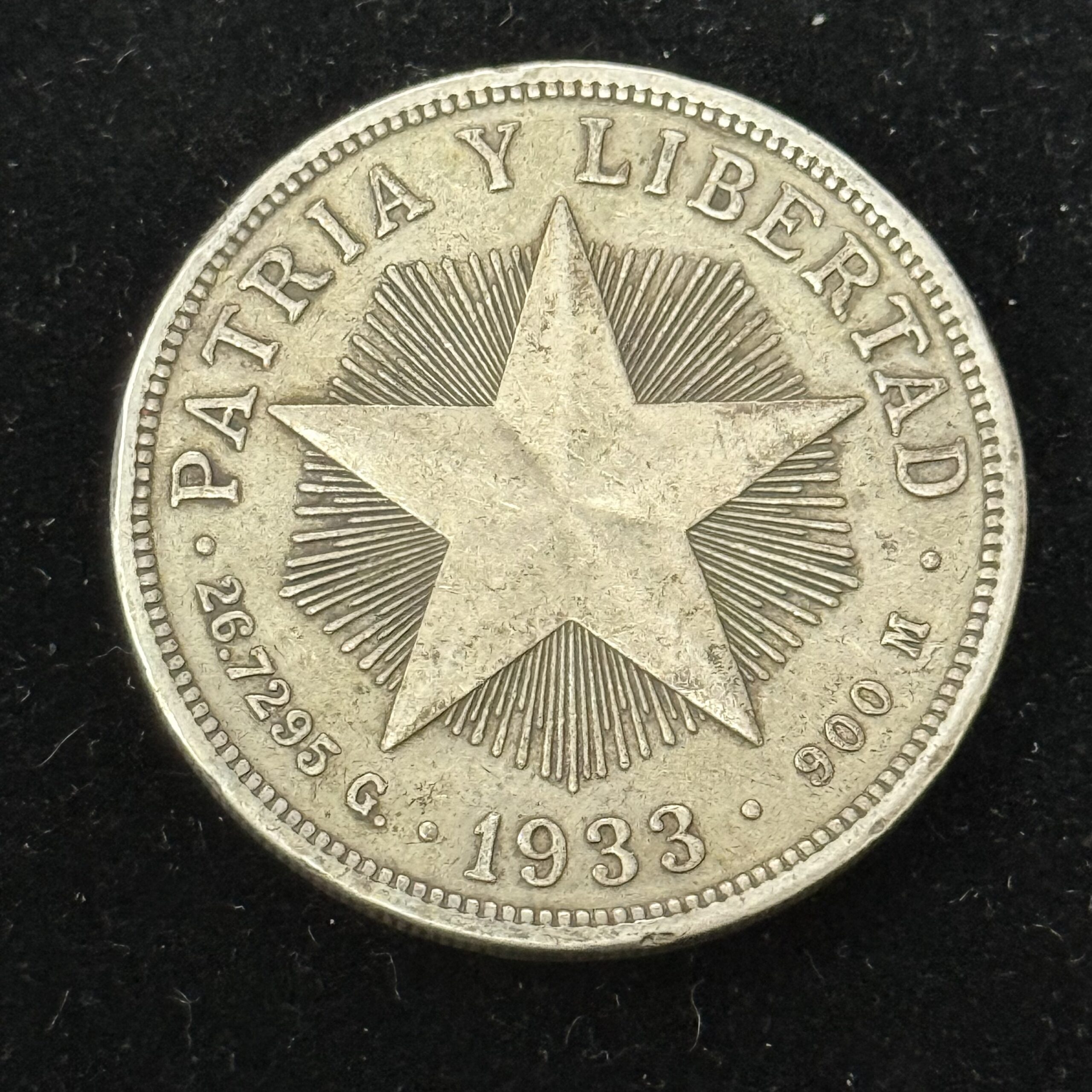 1933 Silver Cuba Star Peso AU