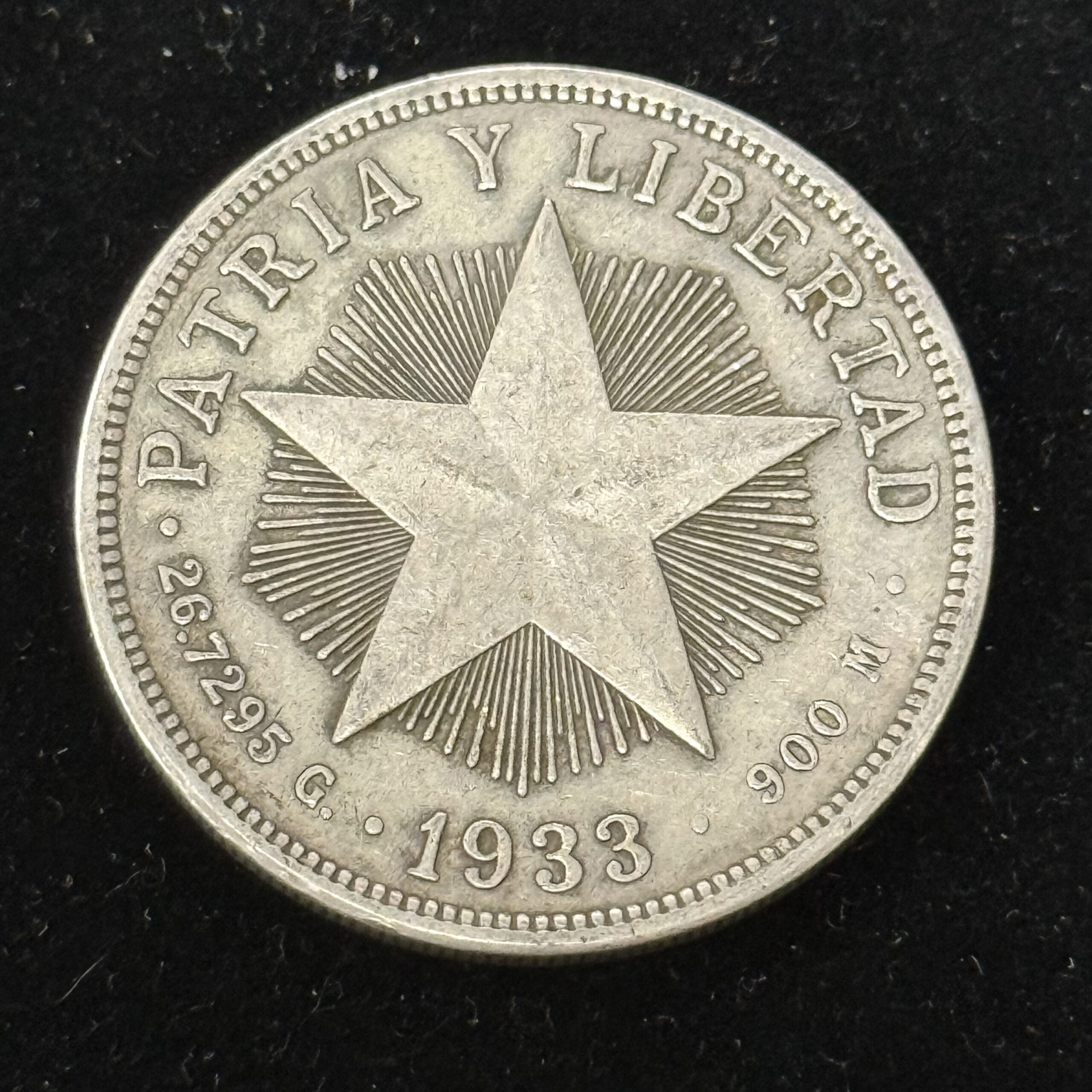 1933 Silver Cuba Star Peso AU