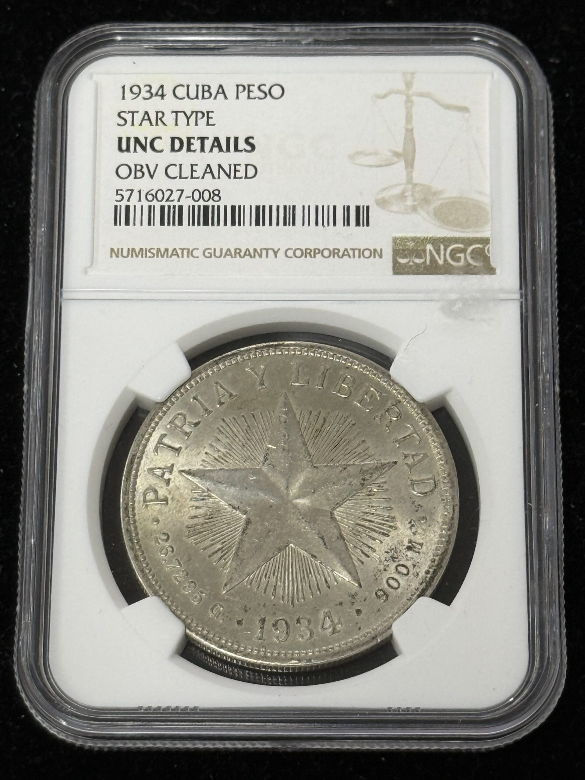 1934 Cuba Silver Star Peso NGC UNC Obv Clean