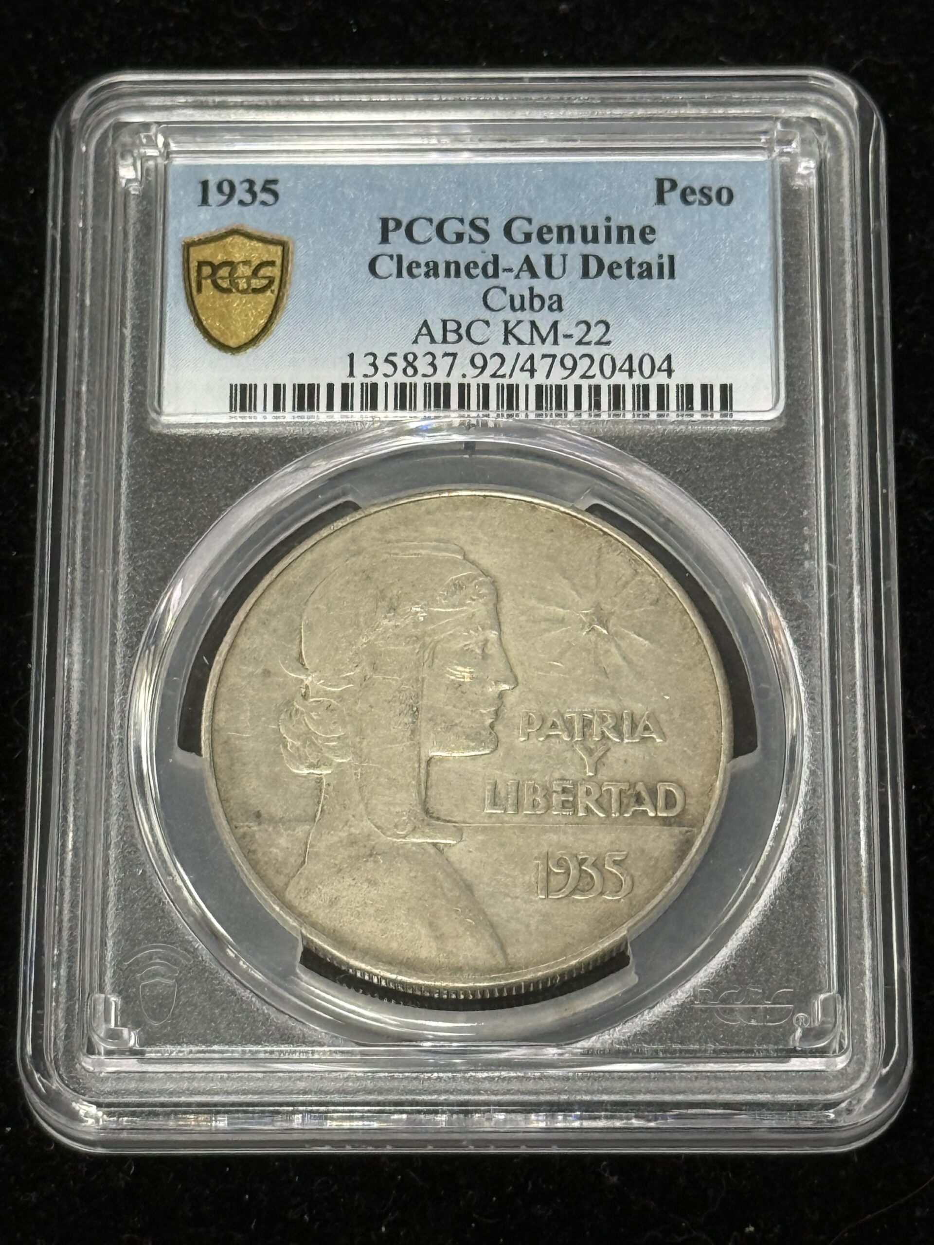 1935 Cuba ABC Peso PCGS AU Detail Cleaned