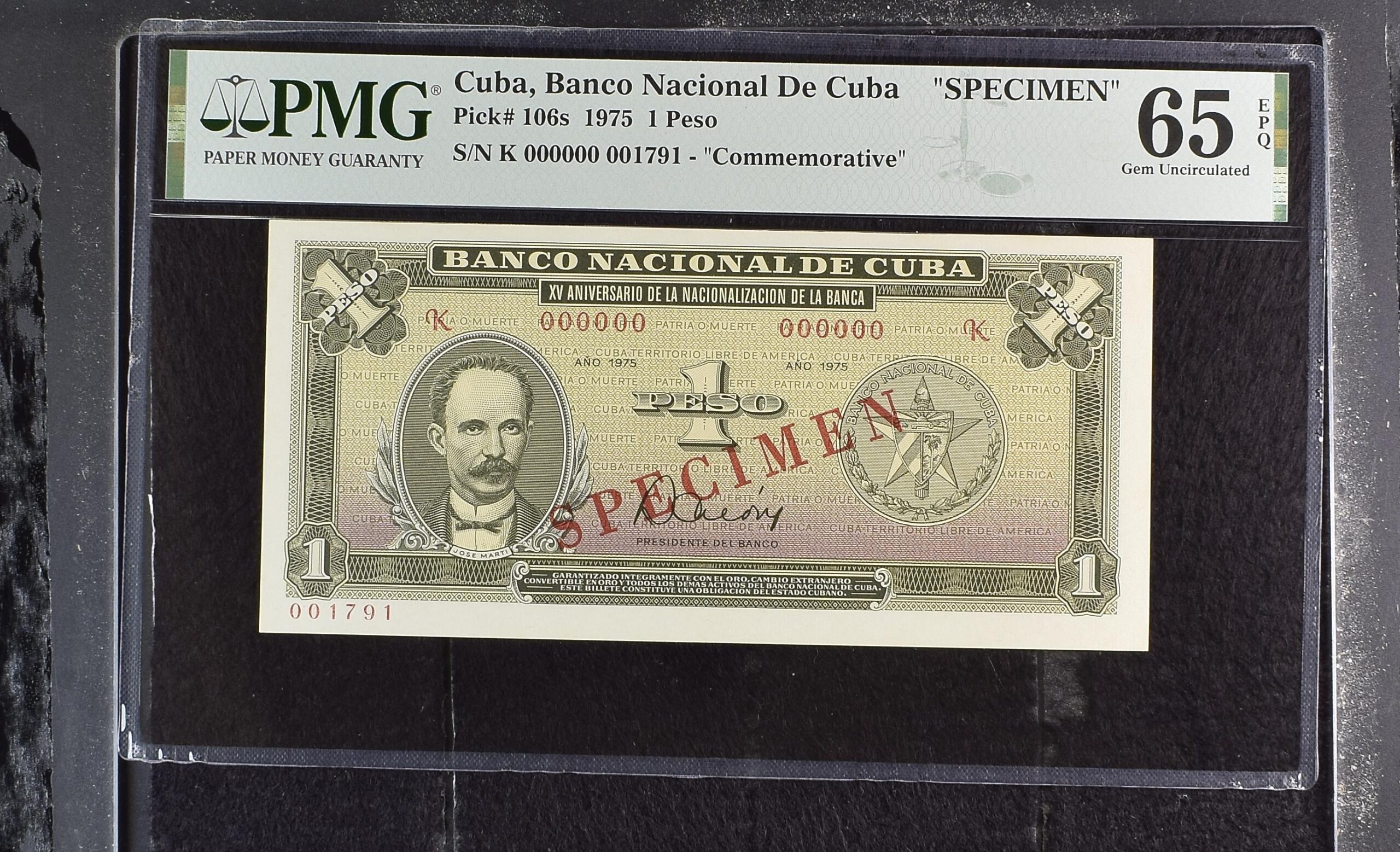 1975 Banco Nacional Cuba 1 Peso Specimen PMG 65 EPQ